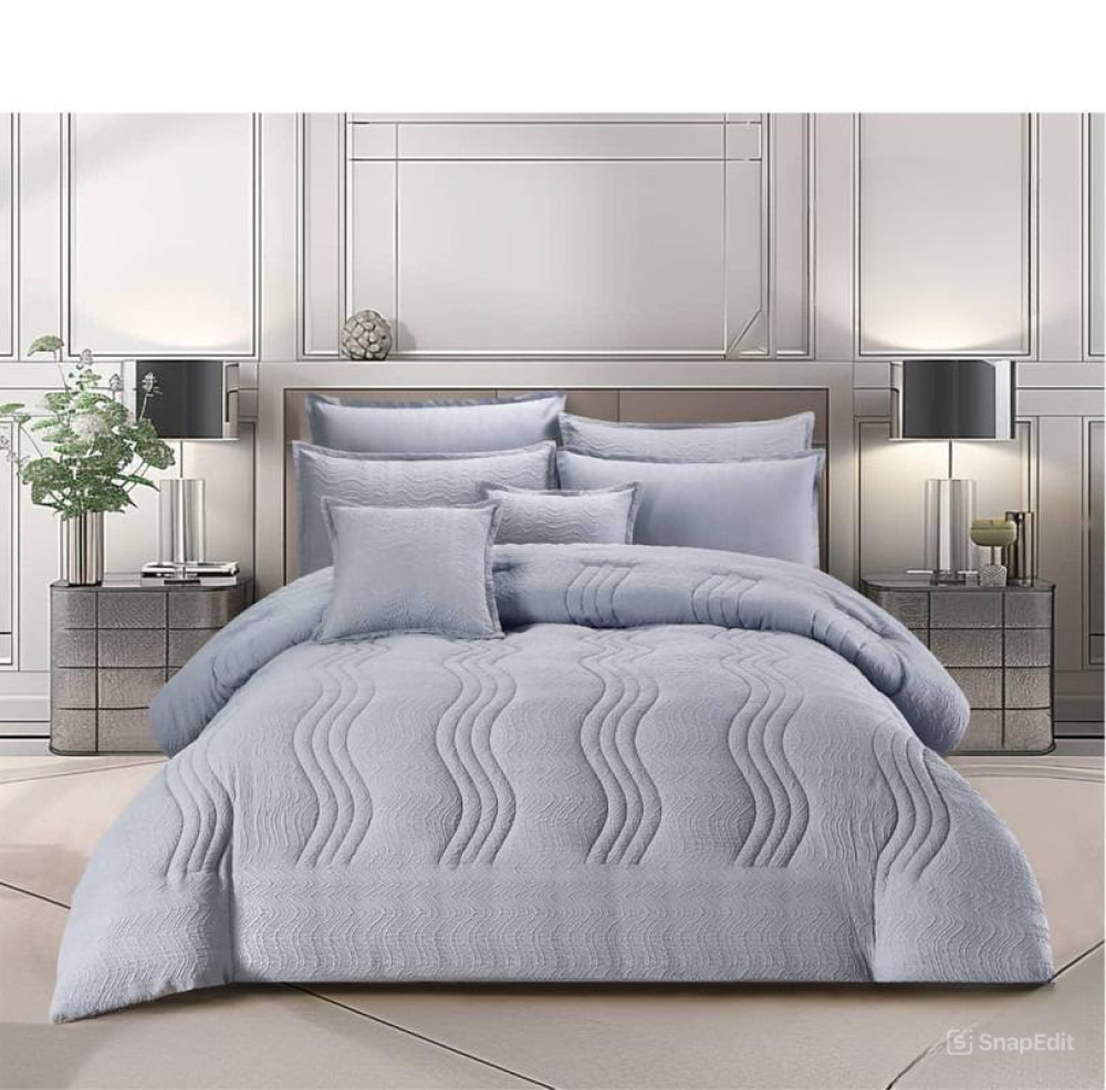 مفرش مايكروفايبر 100% راقي - 8 قطع - حشوة بوليستر - لحاف واحد مقاس 250*230 سم - شرشف واحد 200*200+50 سم -4أكياس وسادات 50*75 سم - 2 أكياس وسادات صغيرة50*45